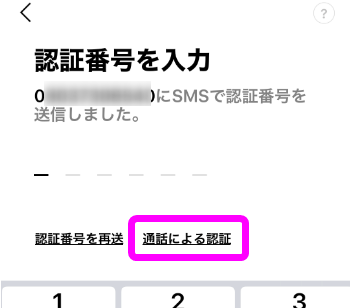 固定電話はSMS(ショートメール)が受信できないので、「通話による認証」をタップします。