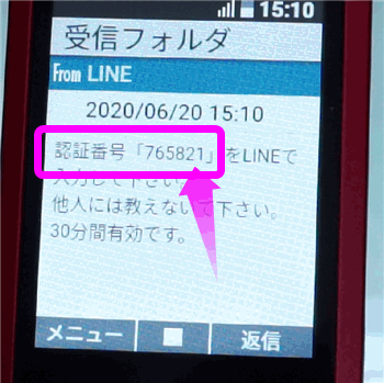 iPadのLINEで表示された数字をiPhone・スマホのLINEに入力します。