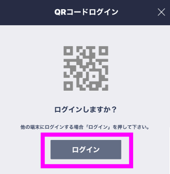 するとこのような画面になるので、②「QRコードログイン」をタップします。
