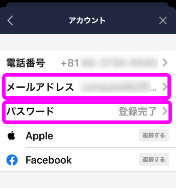 なお、メールアドレスの登録の仕方は、LINEでメールアドレスの登録をするを参考にしてください。