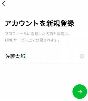 LINEで使う自分の名前を入力します。あだ名でも本名でもどちらでも構いません。あとで修正も出来ます。