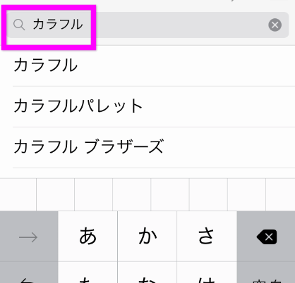 購入したい曲名の一部、もしくはアーチスト名の一部を入力(ここでは『カラフル』)し、検索をタップします。