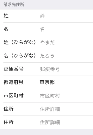 クレジットカード会社に登録している請求者の住所と氏名を入力します。