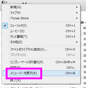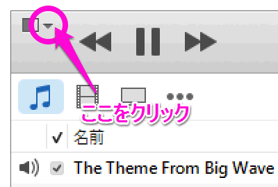 メニューバーを表示させるには、iTunesの左上にある小さな三角をクリックします。