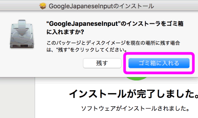 普通のソフト・アプリはインストールの最後に、このように「インストーラーをゴミ箱に入れますか?」と聞いてきます。