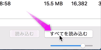 「すべてを読み込む」をクリックするとiPhoneからの取り込みが開始されます。