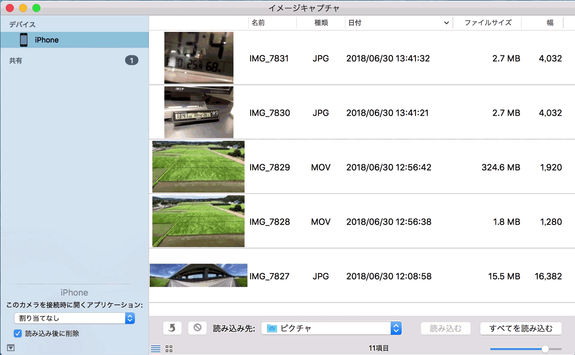 MacでiPhoneの画像を取り込む場合は、基本的には「