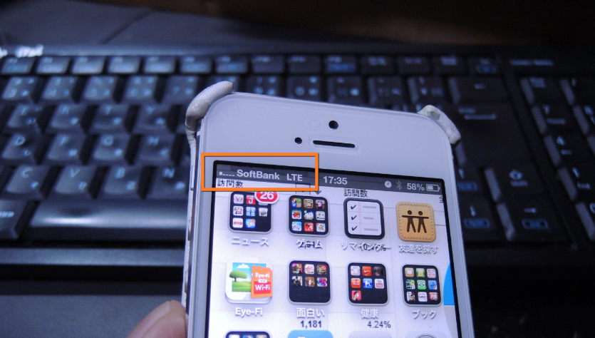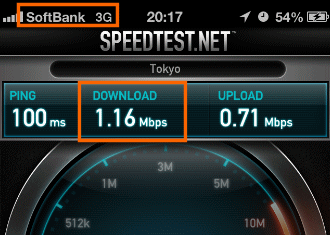 上りは1.41Mbpsであまり速くありませんが、iPhone4の時の8倍ぐらいの速度になっています。
