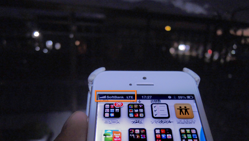 ところが雨戸を開けて窓から手を出してみると、なんとアンテナはMAXになりました。ソフトバンクのLTEは、電波をキャッチするのに時間がかかると言われていましたが、窓から手を伸ばした瞬間アンテナの表示はMAXになりました。