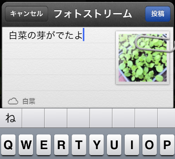 で、先ほどの共有一覧でFacebookを選択すると、このようにFacebookに投稿できました。