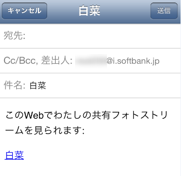 メールが起動して写真のURLが張り付いたメールを送信することができます。