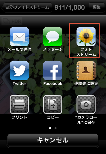 どうやらフォトストリームは単にネット上に保存されるだけでなく、ツイッターやフェイスブックなどのSNSに簡単に投稿したり、自分以外の人に公開したり、メールに添付したり、プリントしたりすることが出来るようになったようです。