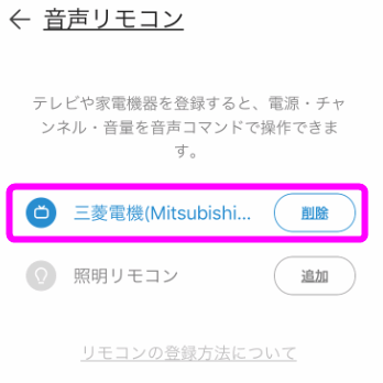 今の段階(2017年10月)では「テレビリモコン」と「照明リモコン」しか登録できません。(さらに言うと照明リモコンもまだ設定できません)