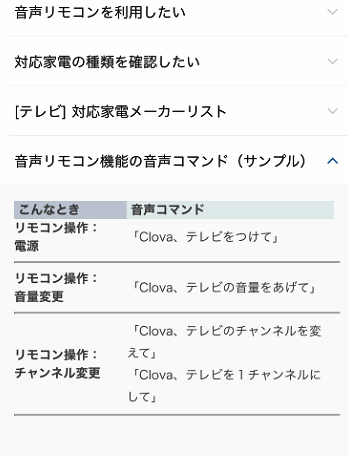 ちなみにClovaを使ったテレビのリモコンの操作のコマンドはこんな感じ。