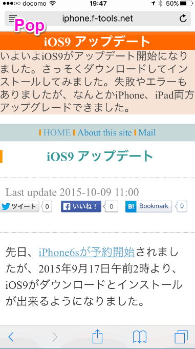 更に強くディスプレイを押す(POP)と、リンク先が画面いっぱいになりました。