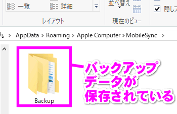すでにバックアップをしたことがある場合、この「Backup」を開くと長い名前のフォルダが作成されていると思います。