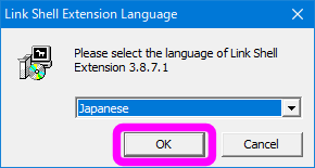 言語の選択で、「Japanese」になっていることを確認して、OKをクリックします。