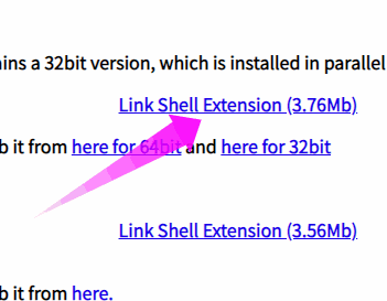 「Link Shell Extension」は2つありますが、上の方は64ビット。下が32ビット版です。いまのWindowsはほとんどが64ビット版なので上の「Link Shell Extension」をクリックしてください。