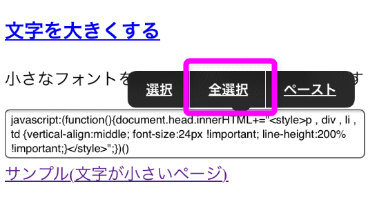 さいごに紹介するのは「ブックマークレット」という方法で文字を大きくする方法を考えてみました。