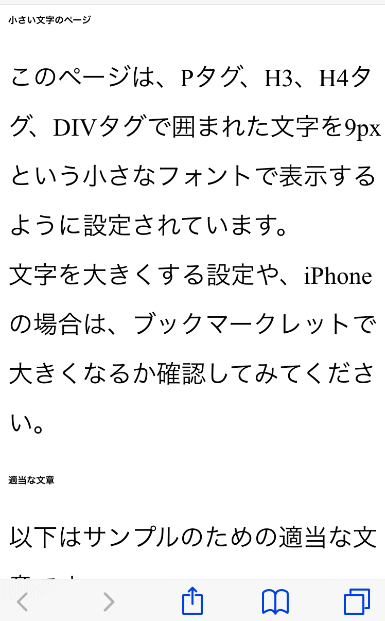 先ほどのページの「サンプル(文字が小さいページ)」の部分をタップします。