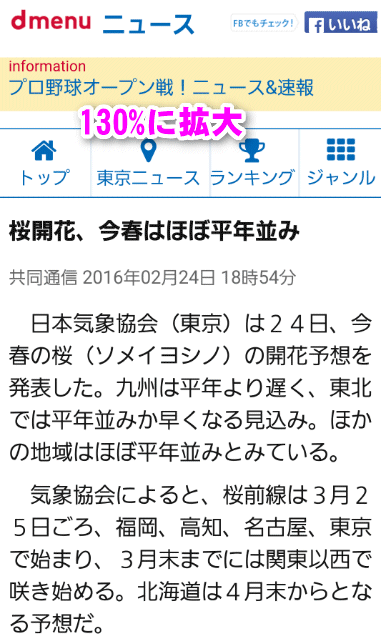 このSafariの文字の拡大縮小の便利なところは、一度拡大させると、同じドメインであれば別のページや次回同じページを開いた場合でも、拡大率は維持される点です。