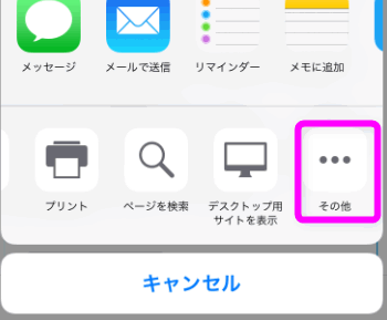 Safariで好きなページを表示させ、画面中央下の共有ボタン(丸で囲った部分)をタップします。