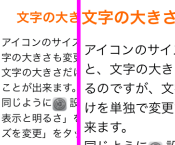Safariの文字の拡大・縮小昨日はきちんと画面の端で改行してくれます。