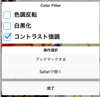 「設定」をタップするとこのようなメニューが表示されるので、「ブックマークする」をタップするとEyeFriendlyのホーム画面に登録されます。