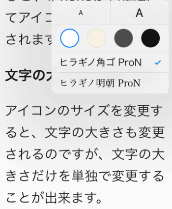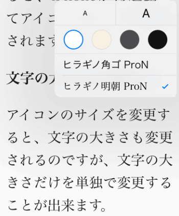 選べるフォントは「ヒラギノ角ゴシック RroN」と「ヒラギノ明朝 ProN」の2つ。