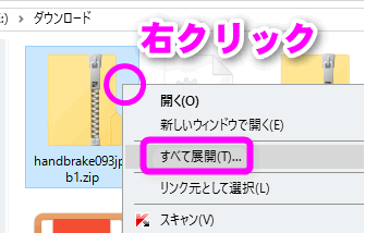 ダウンロードしたファイルはZIP形式で圧縮されているので、右クリックし「すべて展開」を選択します。