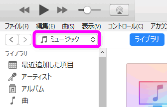 iTunesに登録した動画を整理・編集する場合は、iTunesの右上の「ミュージック」の部分をクリックし・・・