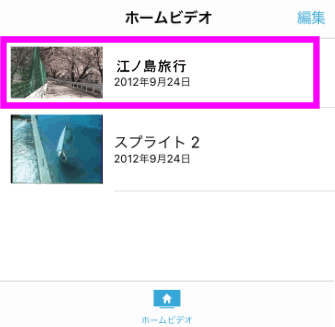 ビデオアプリを立ち上げると「ホームビデオ」の再生リストが表示されて、転送した動画が登録されています。