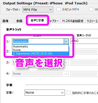 複数の音声がある場合、「音声・字幕」タブの「音声トラック」で選択することができます。