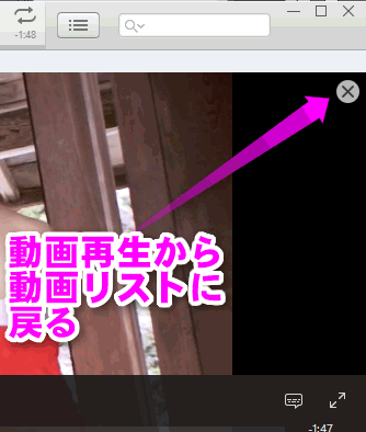 iTunesに登録した動画を再生した場合、元の画面に戻るには動画の右上の方にある小さな罰じるしをクリックします。