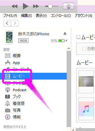 iTunesに登録した動画は、先程の画面では登録を解除したり削除したり出来ません。