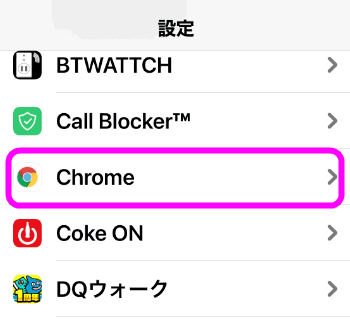 設定を開き、下の方にある「Chrome」(もしくは他のブラウザ)をタップします。