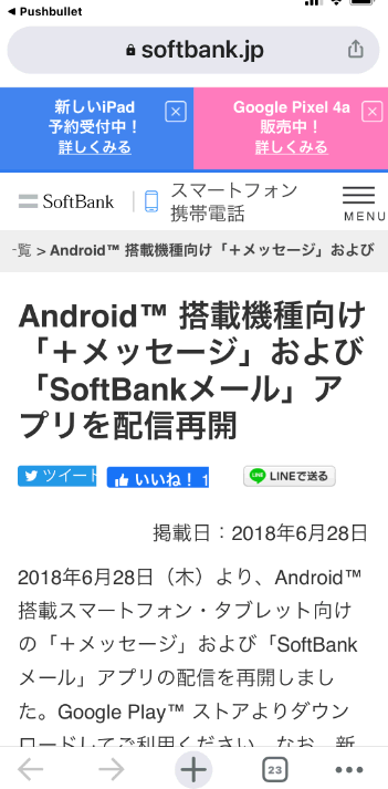LINE内のブラウザで表示されました。Chromeは立ち上がりません。