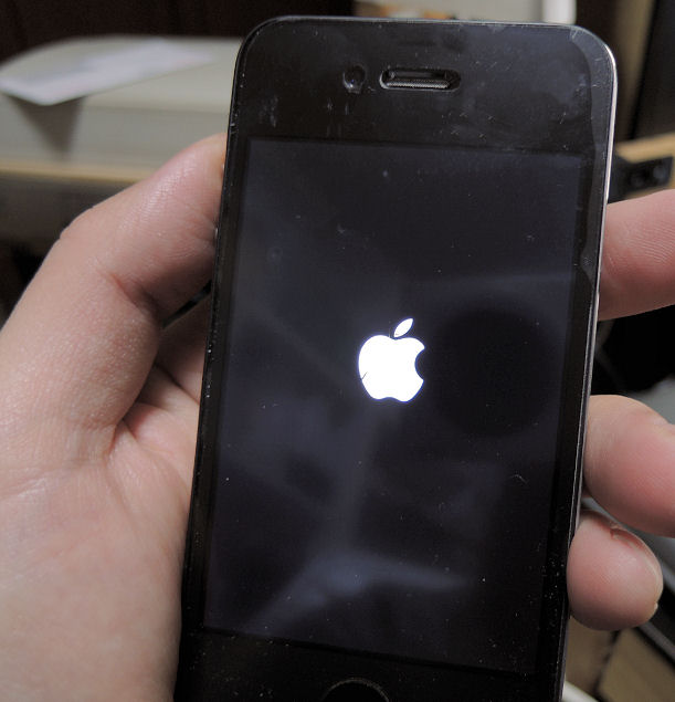 リンゴのマークが出たら、電源ボタンから手を離してください。(押し続けると、また電源が消える)