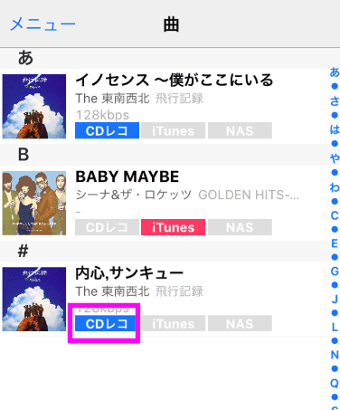 この方法で取り込んだ場合、青いアイコンで「CDレコ」というアイコンが表示されます。