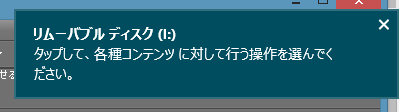 i-FlashDriveをパソコンに挿すと、右上に通知が表示されるので、ここをクリックします。