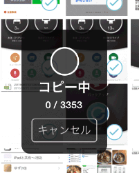 コピー中、スリープ状態になったり、他のアプリに切り替えるとコピーがそこで中断されてしまうようなので注意してください。