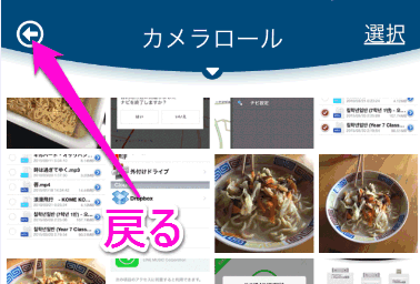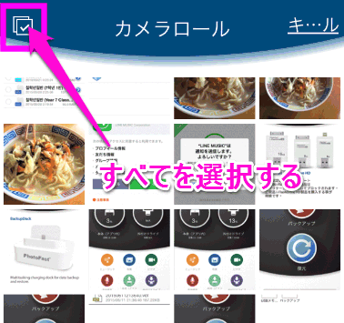 カメラロール内のすべての写真をバックアップする場合は、左上のボタンをタップします。