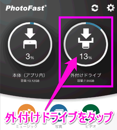 このボタンは、iPhoneにi-FlashDriveを繋げていないとタップできないようになっています。