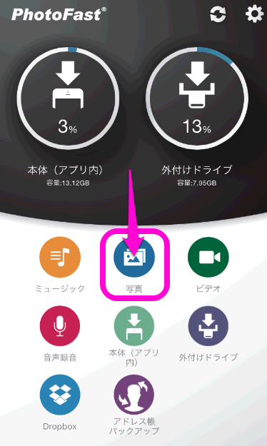 では、さっそくiPhoneで撮影した写真をこのi-FlashDriveにバックアップしてみましょう。