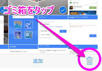 削除したい写真を選択します。まとめて選択するには、左から右へ指をディスプレイから離さずにスライドさせると一気に選択できます。