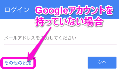 Googleアカウントを取得していない人は、「その他の設定」をタップします。