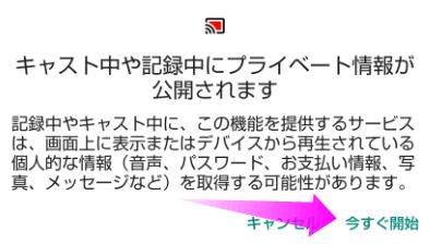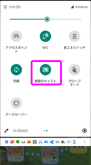 アンドロイドの通知を開き、「画面のキャスト」をタップします。