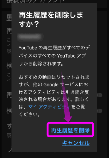 ほんとうに削除していいか聞いてくるので「再生履歴を削除」をクリックします。
