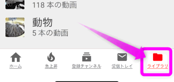 再生履歴を表示させるには、画面右下の「ライブラリ」をタップします。