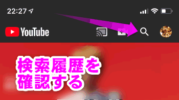 また、検索履歴を表示させるにはYouTubeアプリの基本画面の上の方にある虫眼鏡のアイコンをタップします。